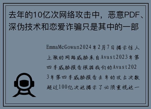 Emma McGowan 2024年2月7日揭示惊人上涨的网路威胁:来自Avast 2023年第四季威胁报告根据我们的Avast 2023年第四季威胁报告,去年的攻击次数超过100亿次,这揭示了必须重视这一问题的迫切需求。如果你还在希望网路攻击有所减少,请准备好迎接现实检查:2023年是网路威胁空前猖獗的一年。我们目睹了超过100亿次攻击,打破了之前的纪录。这不仅仅是一个数字;它是一个关于当今网路...